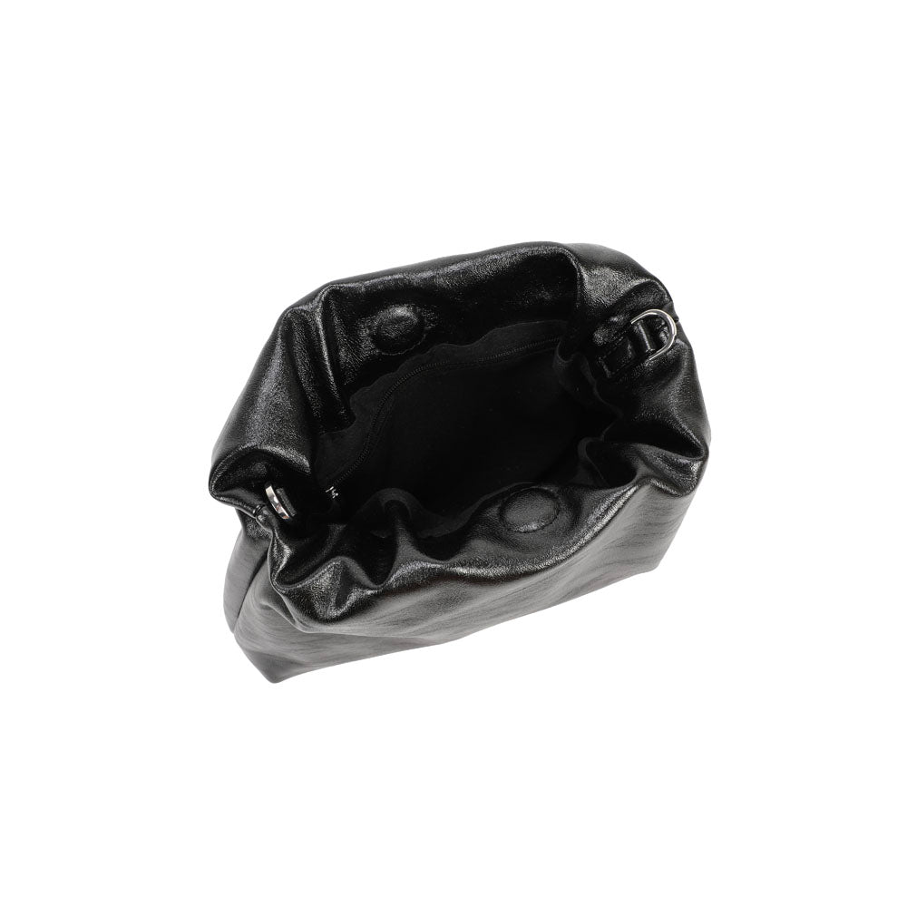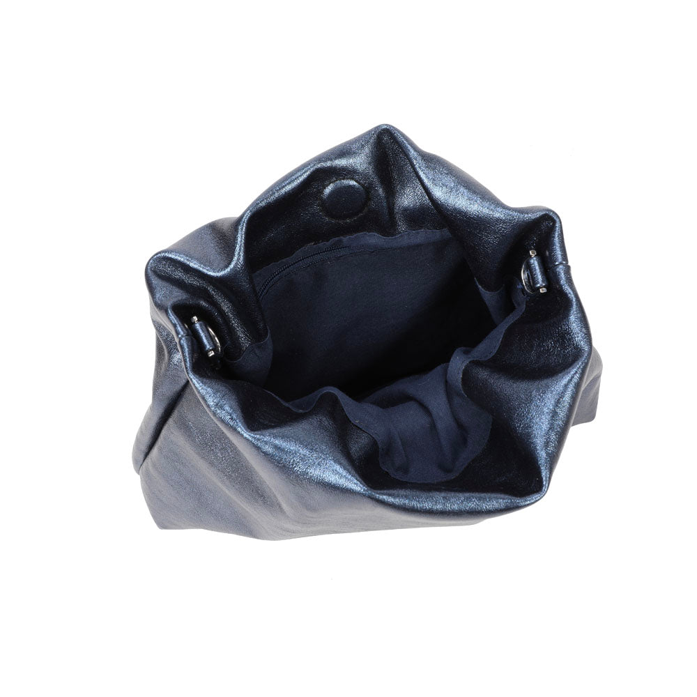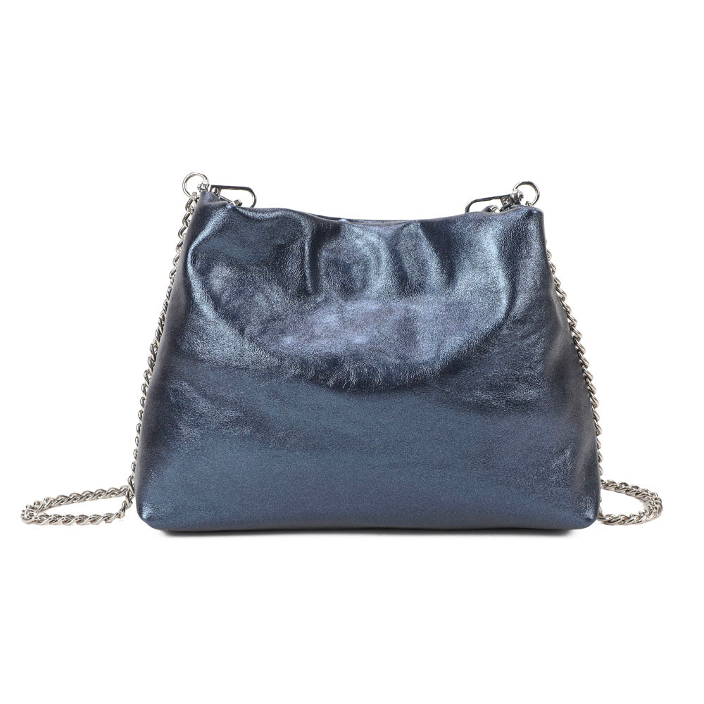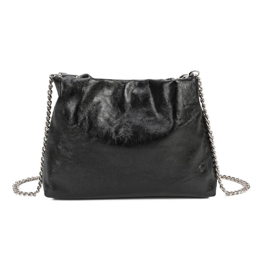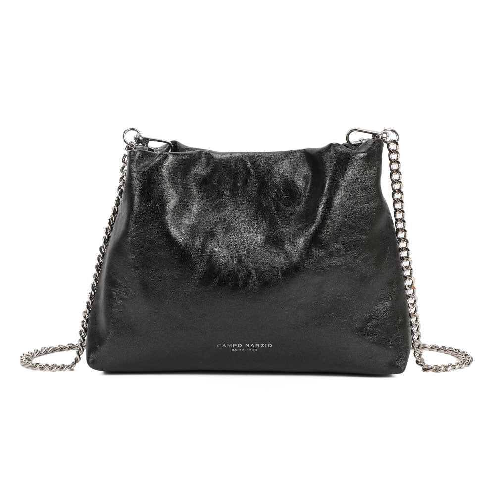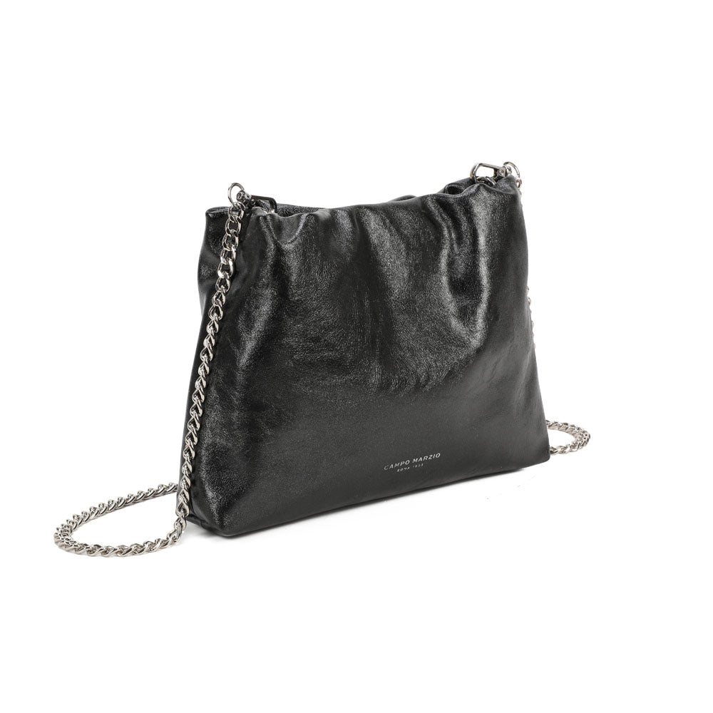 Stylish and light bag with a modern silhouette and charming metal shoulder strap. With interior pockets, it is perfect for storing your personal accessories such as keys, wallet, smartphone and more. Soft and practical, it will make all your looks eye-catching and super bright. Ideal to wear to a dinner party or happy hour. FEATURES: Magnetic button closure. Interior: flat pocket and zip pocket. Wearability: by hand and shoulder strap.